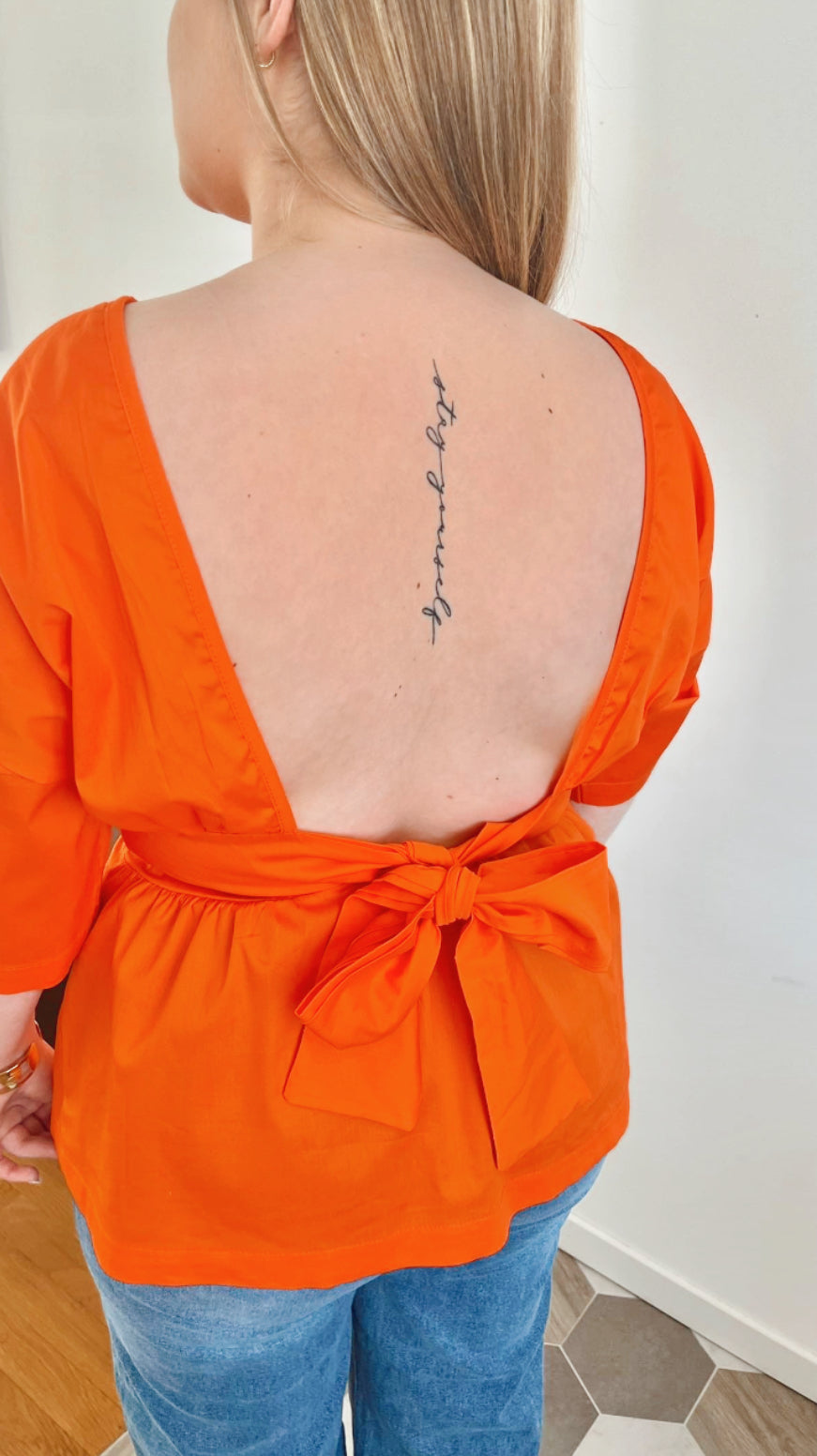 Blouse en coton avec dos nu et nœud à l'arrière.
