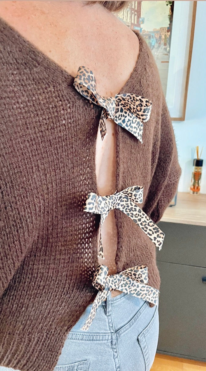 Craquez pour ce pull tendance orné d’un nœud léopard, qui allie douceur, originalité et féminité.