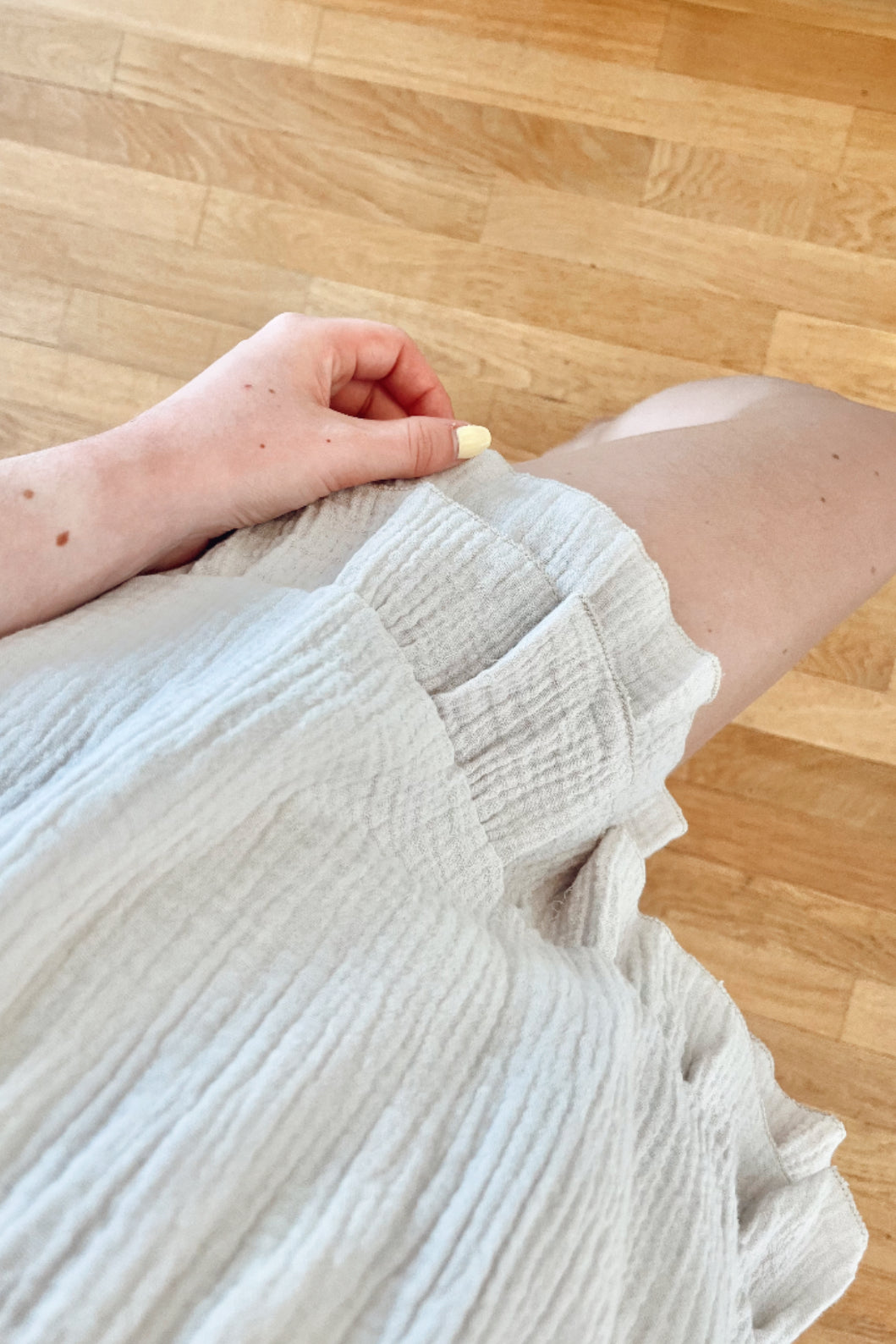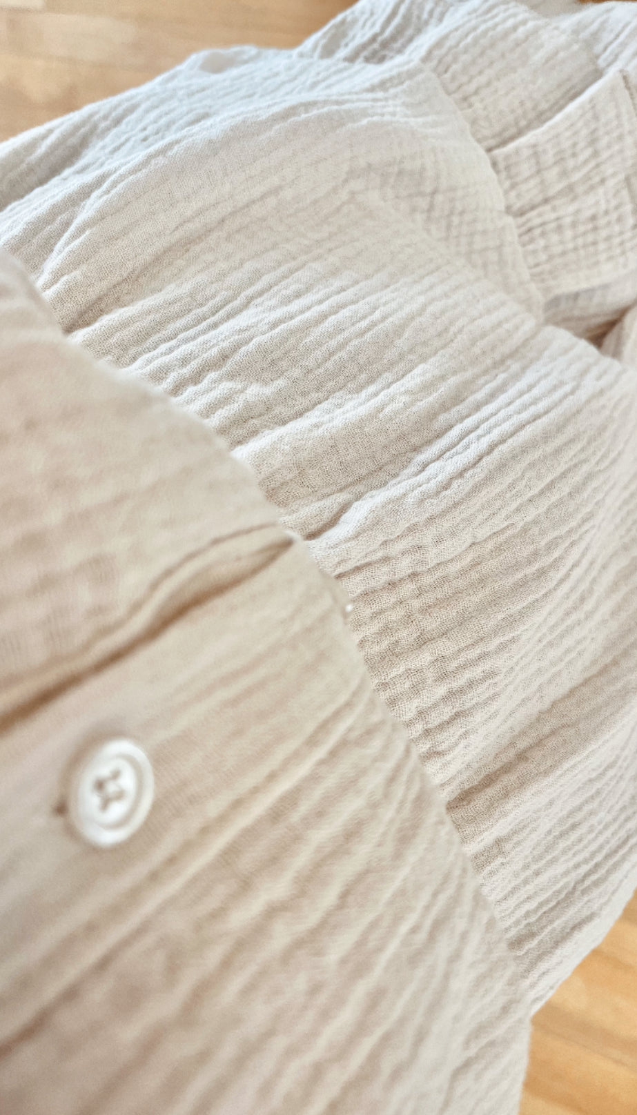 Robe combishort beige bohème en gaze de coton à volant.