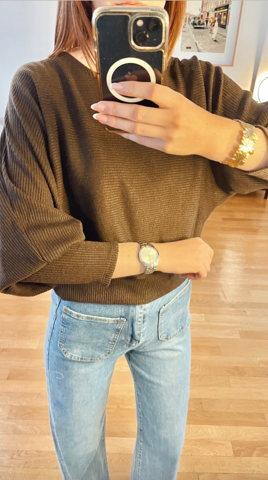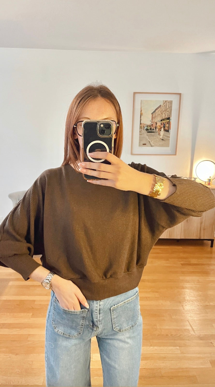Sublimez vos tenues avec ce top brillant à manches chauve-souris, alliant confort et élégance.